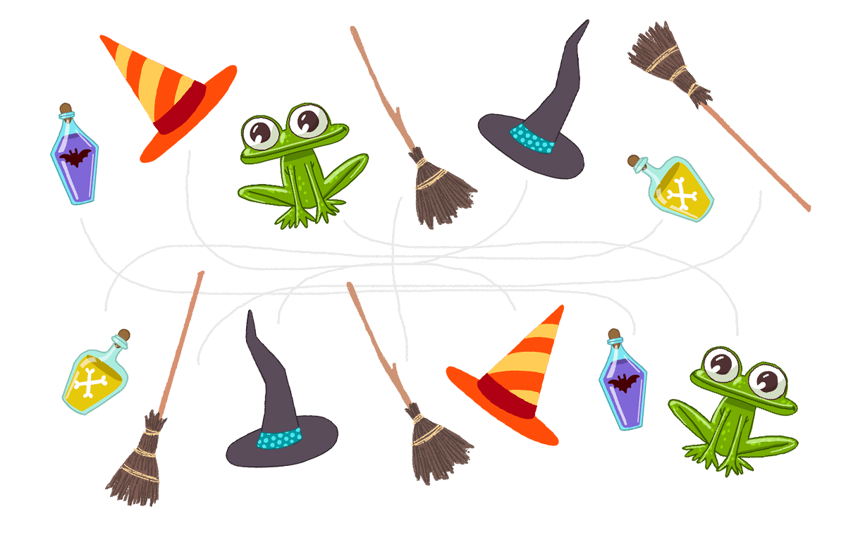 Ведьма очень обрадовалась, что ты нашел все, что ей нужно для праздника. А тем временем подготовка к празднику идет полным ходом! Ведьма уже даже нанесла маску, чтобы быть самой красивой. И тебе тоже приготовила маску! Правда, немного другую!